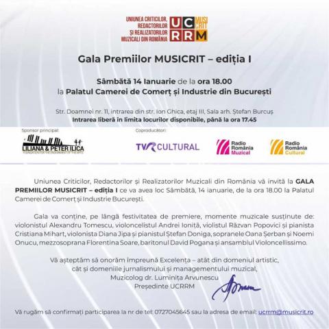 Uniunea Criticilor, Redactorilor și Realizatorilor Muzicali din România (UCRRM) organizează în data de 14 ianuari...